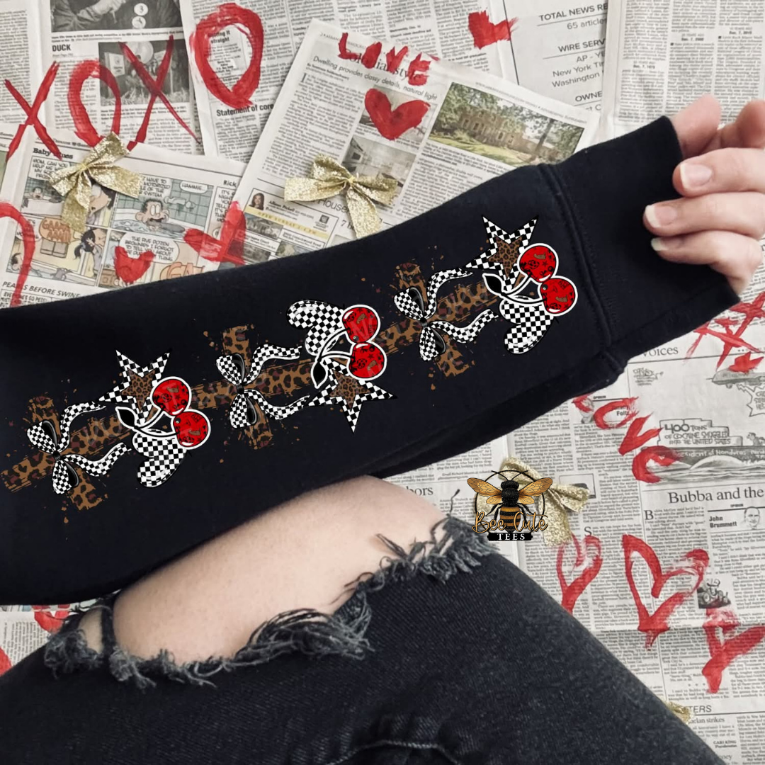 Short sleeve orders will not include sleeve design. Long sleeve orders please leave a note at checkout or send us an email and include your order number to tell us where you would like the sleeve design placed.